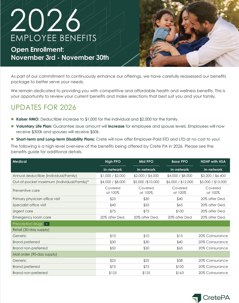 This is your annual opportunity to enroll or make changes to your benefits. All employees are asked to review the information provided below and actively confirm elections.